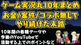 これは、単に個人的にゲームを遊んでいて動画としてやっていなかったため、ゲーム実況自体をしていないことで、動画が減ったという側面があります。